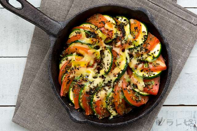 並べて焼くだけ ズッキーニとトマトの重ね焼きのレシピ ソラレピ