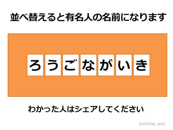 1枚クイズ008 並べ替えるとある有名人の名前になります 1枚クイズ